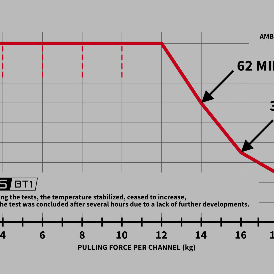 הגרף מציג את תוצאותיו של מבחן עומס סינתטי עם כוח משיכה קבוע, שאיפשר בדיקה מהימנה של יכולות הקירור של ה־QS-BT1.