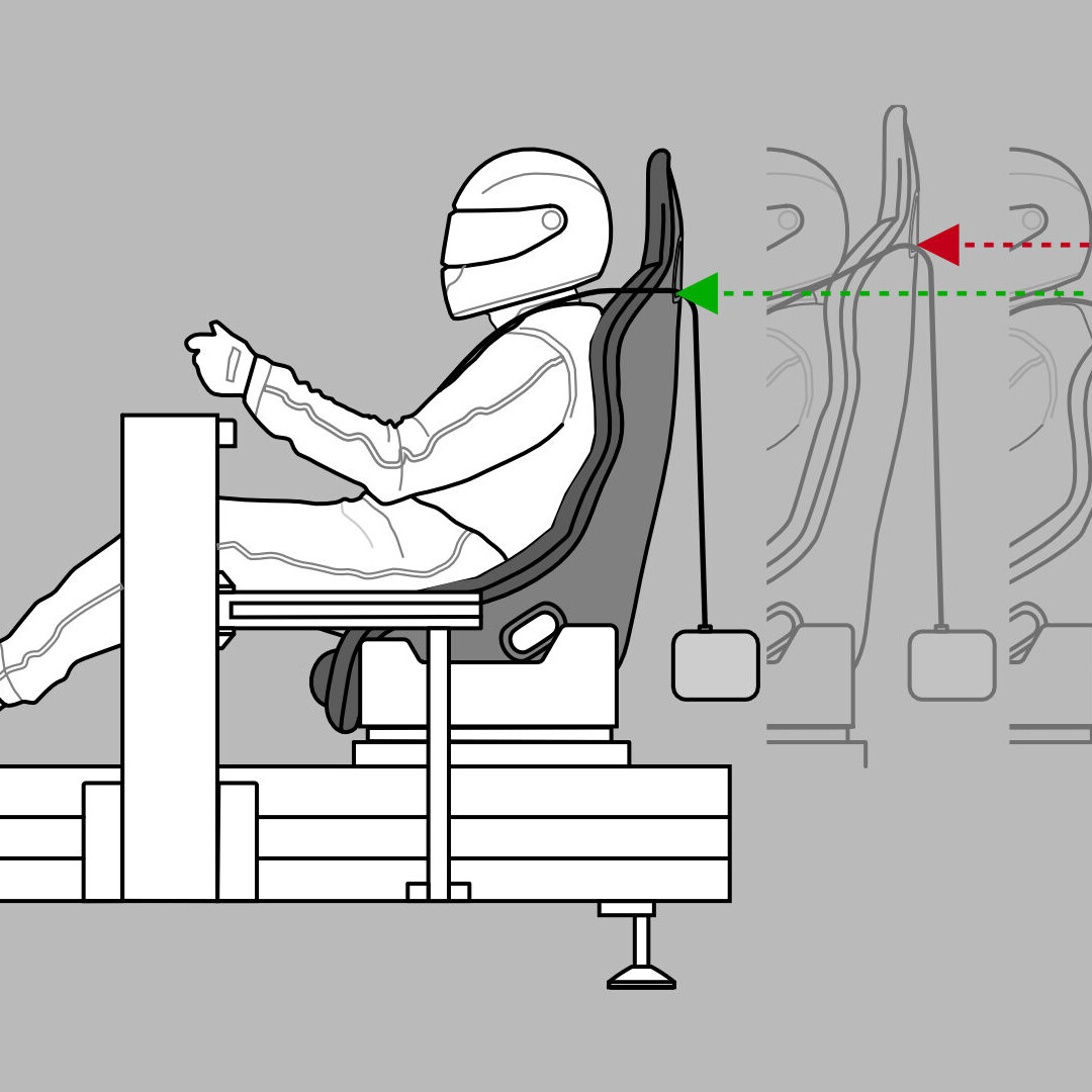 יש לבחור את המושב בצורה מדויקת כך שיתאים לגובה ולרוחב הגוף שלך, שכן מיקום פתחים לחגורות הוא גורם מפתח לחוויית Force Feedback ריאליסטית ושקיעה מלאה בסימולציה.