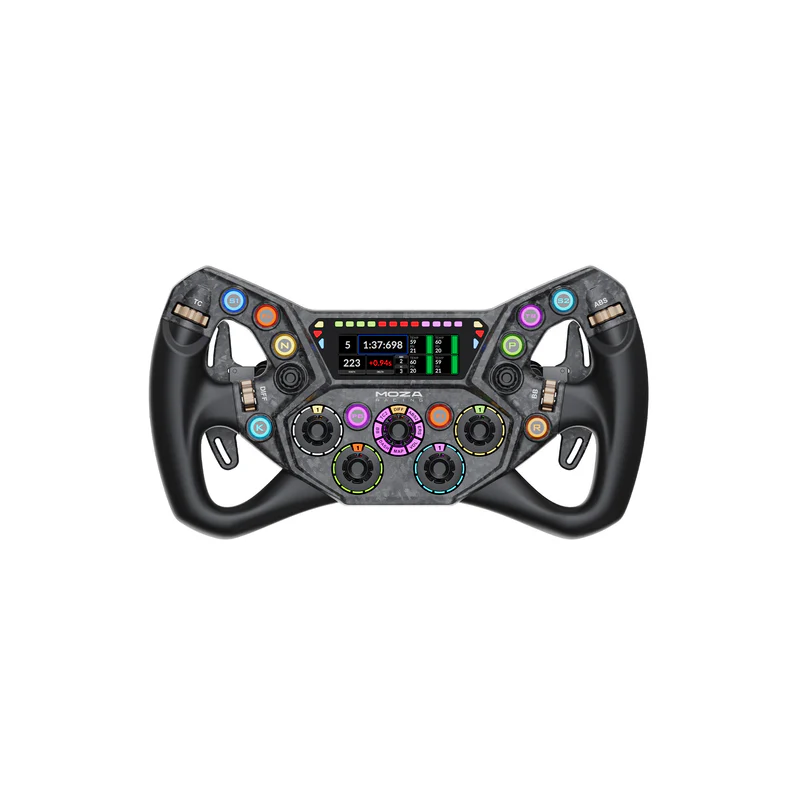 ההגה כולל מסך HD מובנה בגודל 2.99 אינץ’, הניתן להתאמה מלאה דרך תוכנת MOZA Pit House. ניתן ליצור, לשתף ולייבא תצוגות טלמטריה שונות בהתאם לרכב, למסלול ולסגנון הנהיגה. סביבת המידע מועצמת באמצעות מערך תאורת RGB מתקדם, המספק חיווי סל״ד, דגלים וסטטוס מירוץ בזמן אמת – מבלי להסיח את הדעת מהנהיגה.